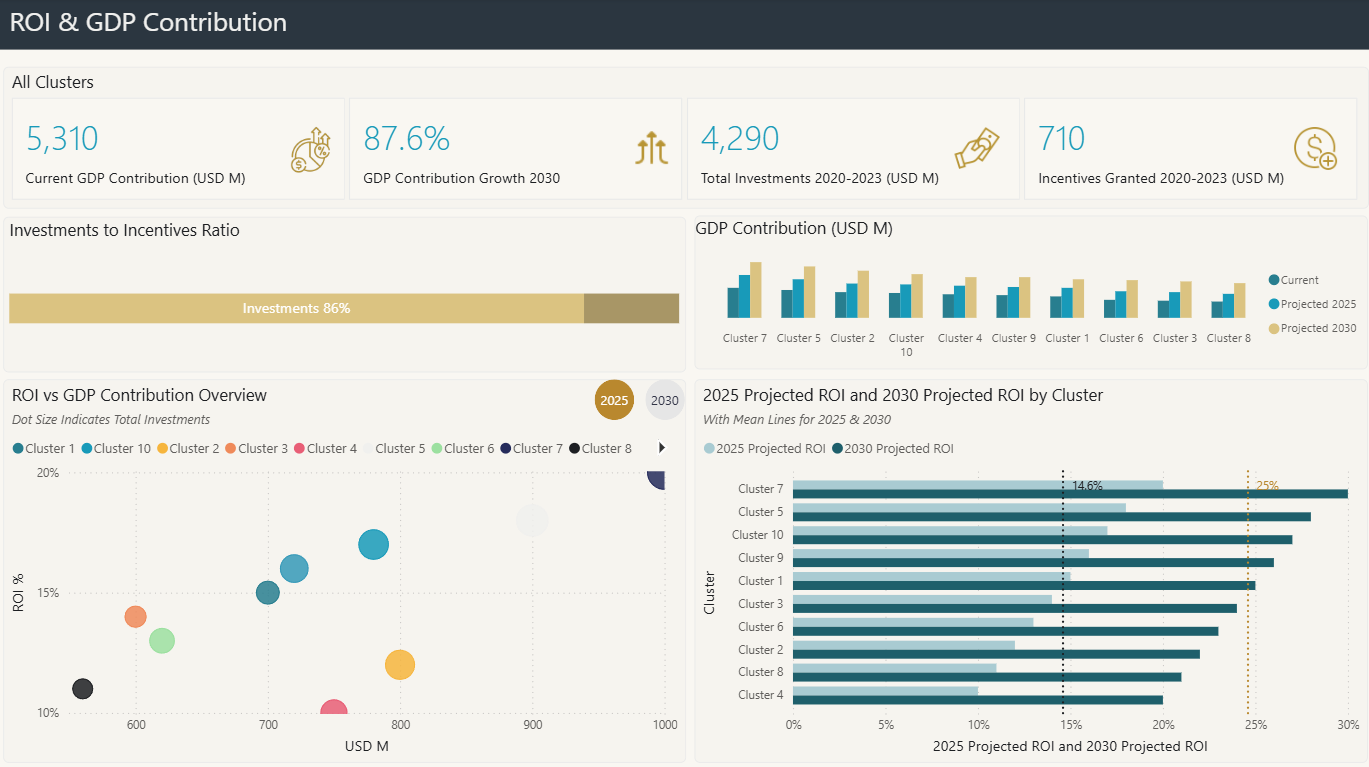 - Assess the ROI on investments and incentives granted, identifying clusters with the highest and lowest returns.